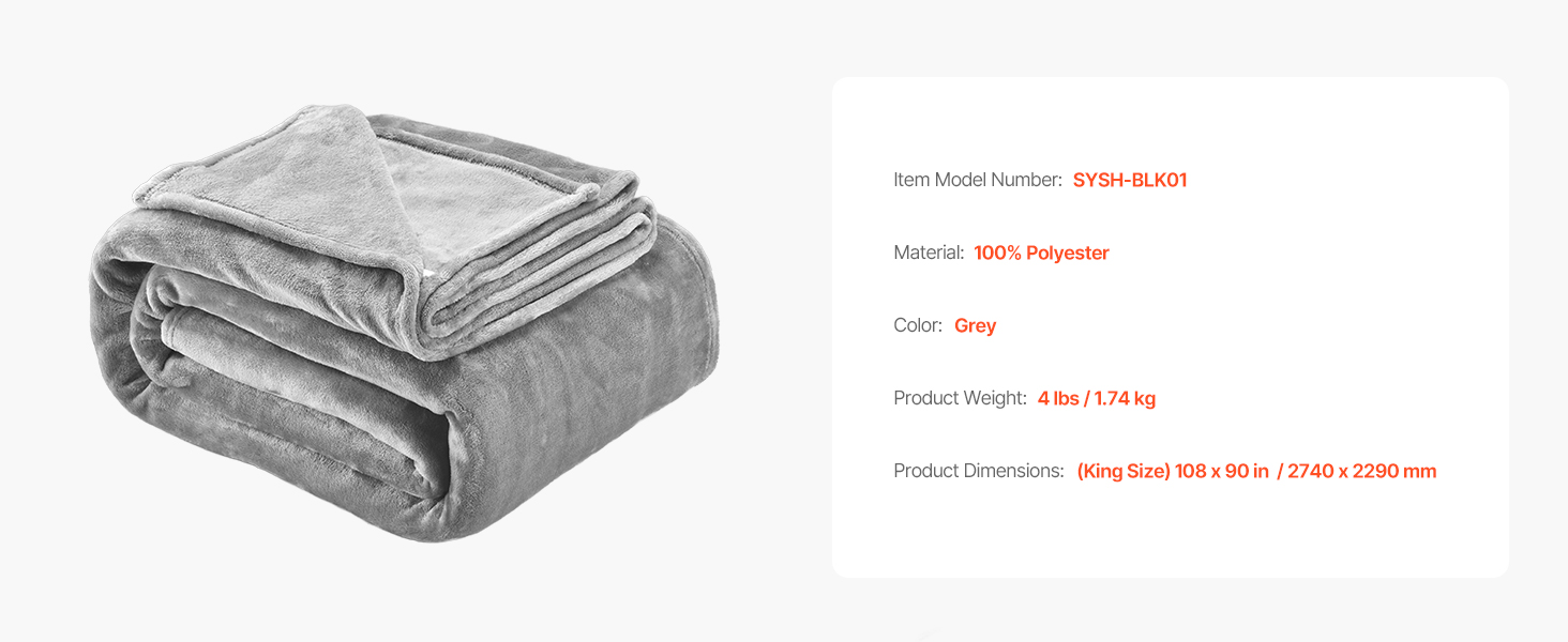 King Size Blanket 108 X 90 Inches Lightweight Throw Blanket for Bed Grey